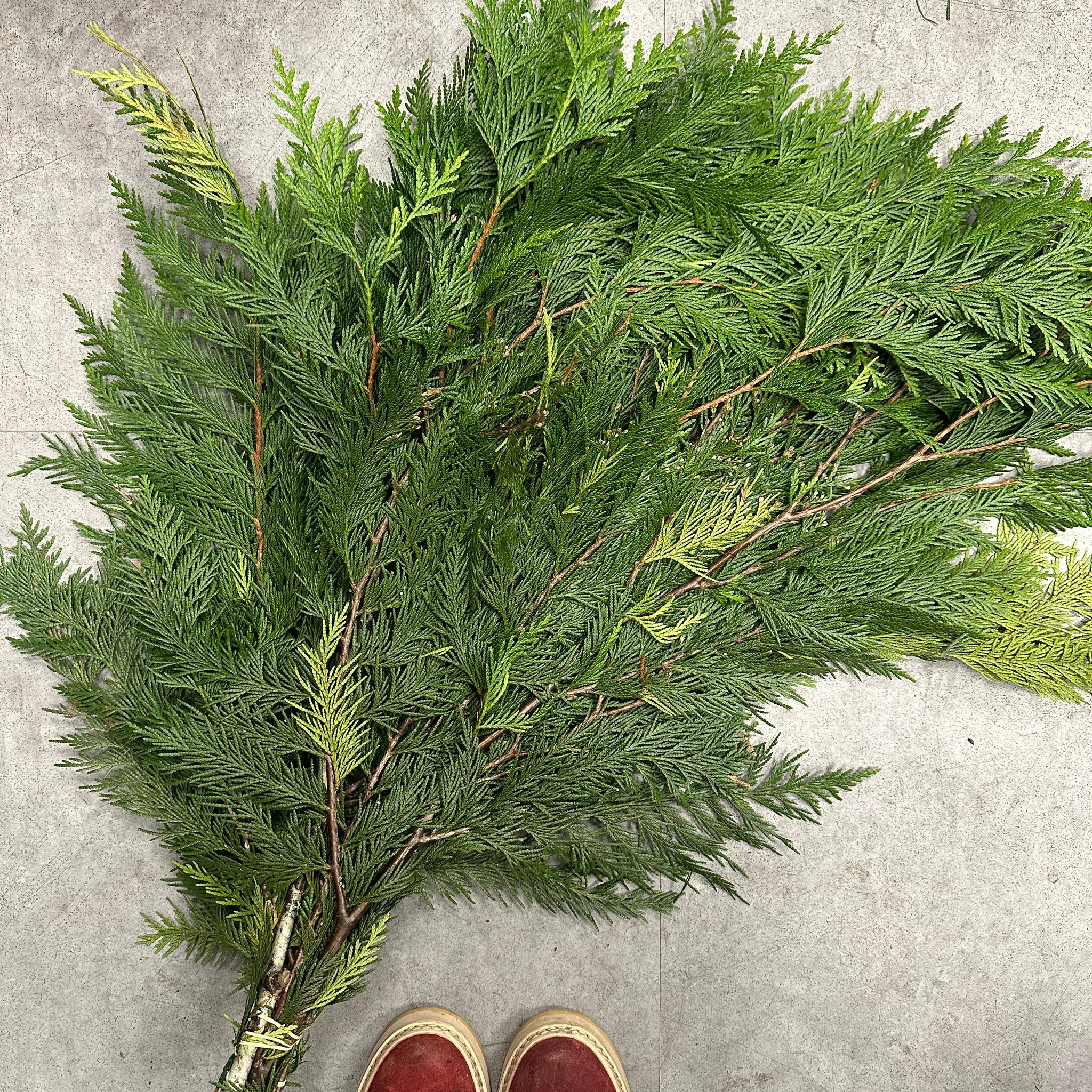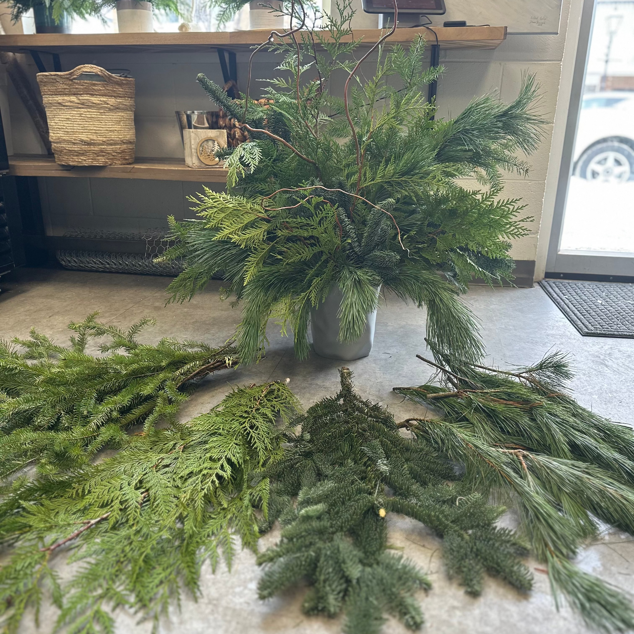 •    A lush mix of fresh winter greens — Douglas Fir, Cedar, and White Pine